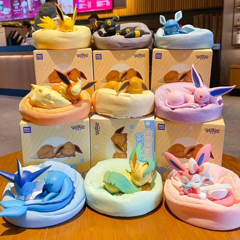 뜨거운 판매 Pkm Eevee 잠자는 자세 시리즈 블라인드 박스 Sylveon Umbreon Flareon Jolteon 애니메이션 데스크탑 장식 모델 장난감 선물