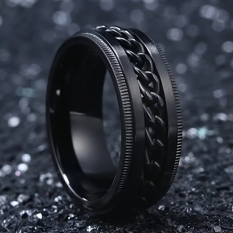 TEMU 남성용 회전형 316L 스테인리스 스틸 웨딩 링, 체인 헤비 인터로킹 체인 디자인, 매끄러운 블랙 모던 주얼리, 데일리 및 포멀웨어, 새해 전야, 크리스마스 선물 - 합리적인 럭셔리 남성 액세서리
