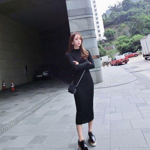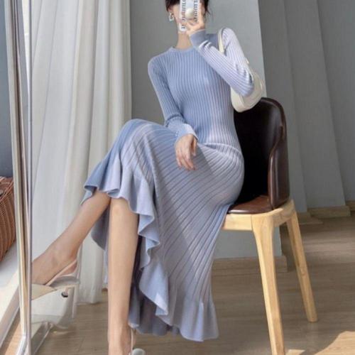 여성스러운 롱기장 슬림핏 반폴라 머메이드 원피스 니트