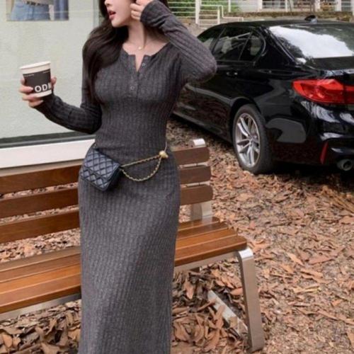 [오너클랜]인기상품 롱 슬림핏 골지 니트 원피스 여성용 데일리룩 [WFLLPYM_260305]