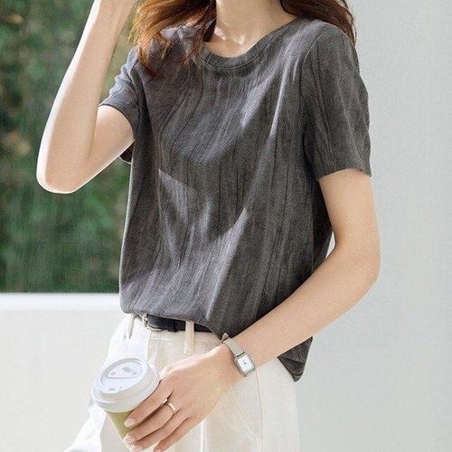 [에이치플러스몰]여성 여름 라운드 기본 크롭 반팔 티 셔츠 핑크