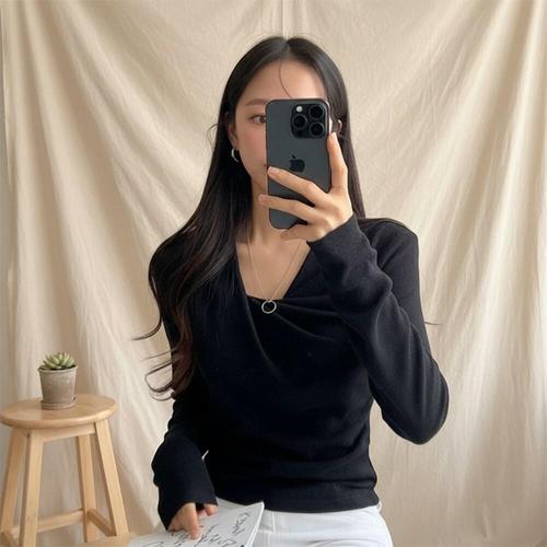 여자 레이어드티 브이넥 스판 핑크색 티셔츠_3