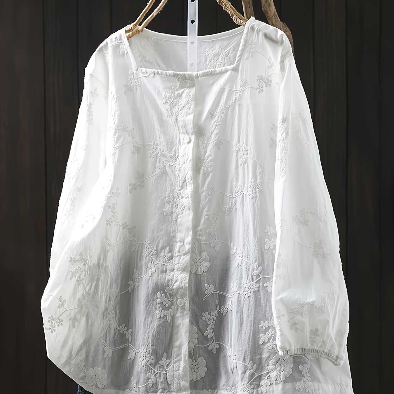 TEMU 플러스 사이즈 - 플러스 사이즈 - 엘레강스 & 스타일리시 여성 플로럴 자수 셔츠 (해외 직구)