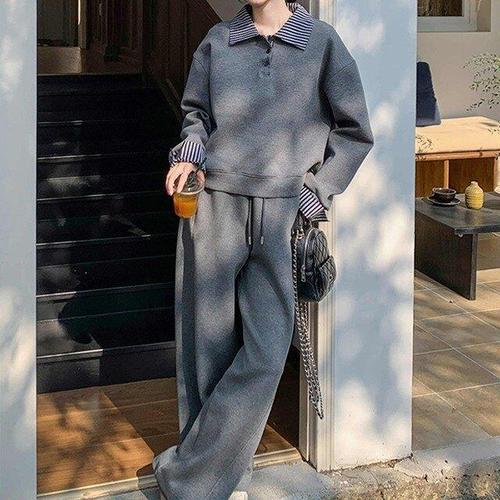 [Sharp] 스트라이프 립 니트 셔츠 - 퍼티 핑크 AFPM2519751-X90