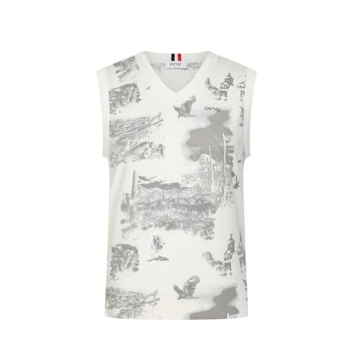 [핑]골프 여성 프린트 브이넥 니트 베스트 121E3SV181-WH_BP