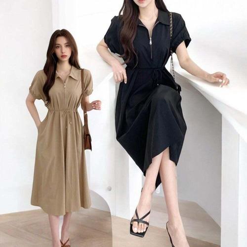 [오너클랜]인기상품 레이스업 롱 드레스 하객 데일리 2컬러 원피스 [WFLLQUH_260305]