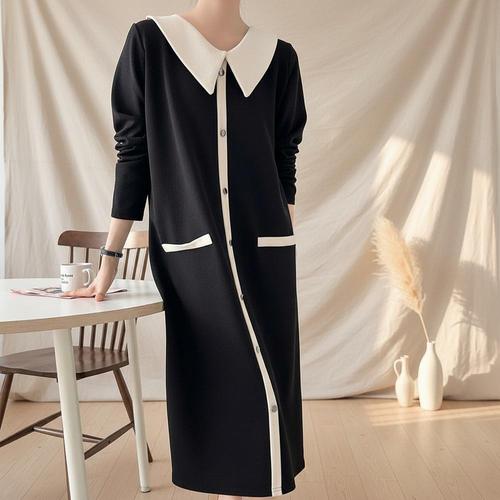 [옷자락] 여성 빅카라 배색 롱 원피스 봄 하객룩 버튼사이즈
