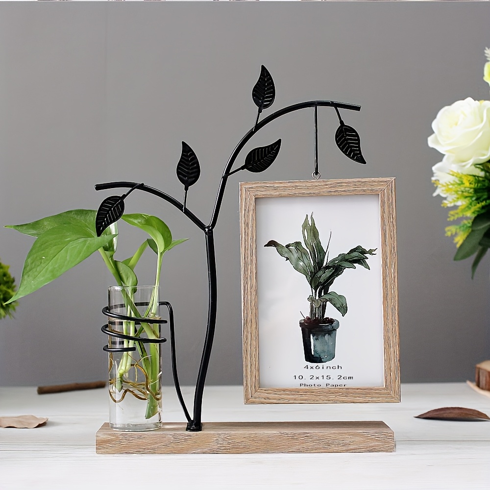 TEMU 테이블탑 디스플레이용 4x6 사진액자, 홈 데코, 6x4인치, 선물용 나무 사진액자 6인치, 10×15cm 양면 유리, 장식용 꽃병과 금속 나무 포함, 2장의 사진 수납 가능, 가족 선물, 생일 선물, 어머니날 선물에 적합