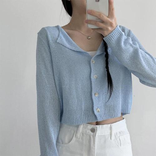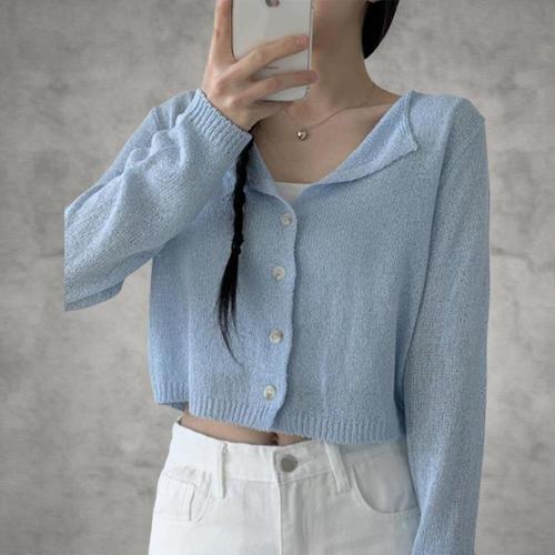 [신상오픈런]여성용 하늘색 시스루 크롭 긴팔 가디건