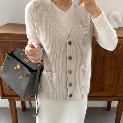 [다잇템_패션]여자 브이넥니트 라벤더 하늘색 파인울 조끼