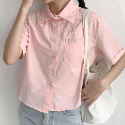 [옷자락]여자 핑크 반팔남방셔츠 폴딩 SS 하늘 엷은 셔츠