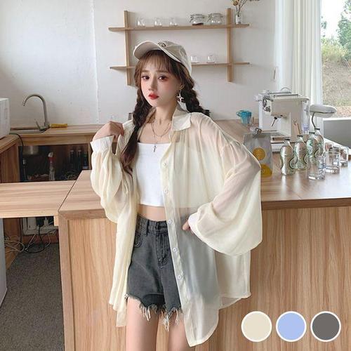 [하늘바라기]모티 크랙 커버업 시스루 셔츠