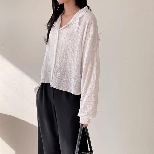 [다잇템][다잇템] 여자 얇은긴팔 레투스 와플 하늘 물결 카라넥 셔츠_16127528_588872