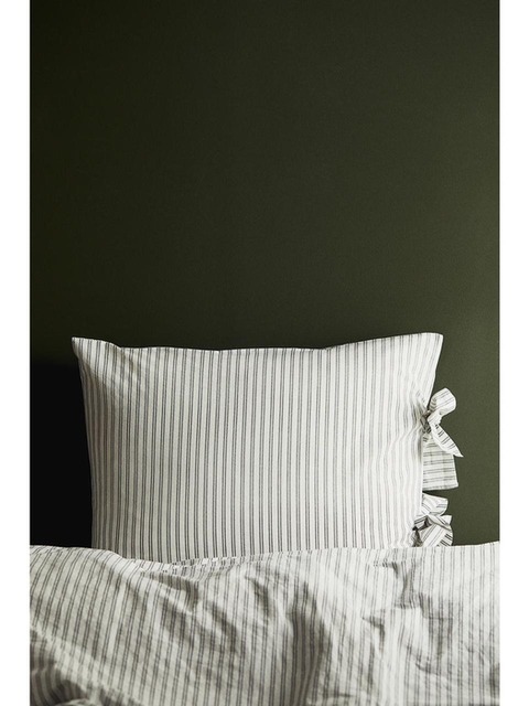 [에이치엔엠] 리본 디테일 싱글 이불커버 & 베개커버 화이트/스트라이프 1260184001
