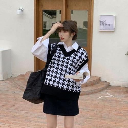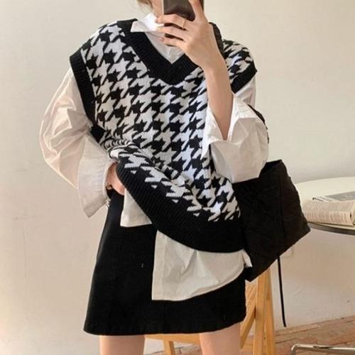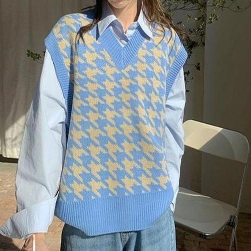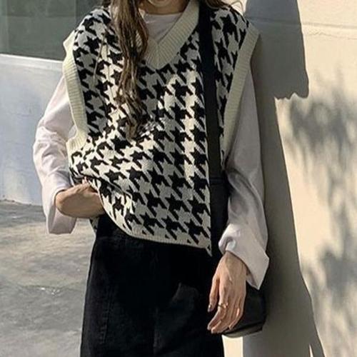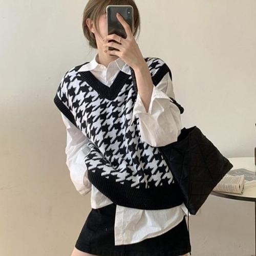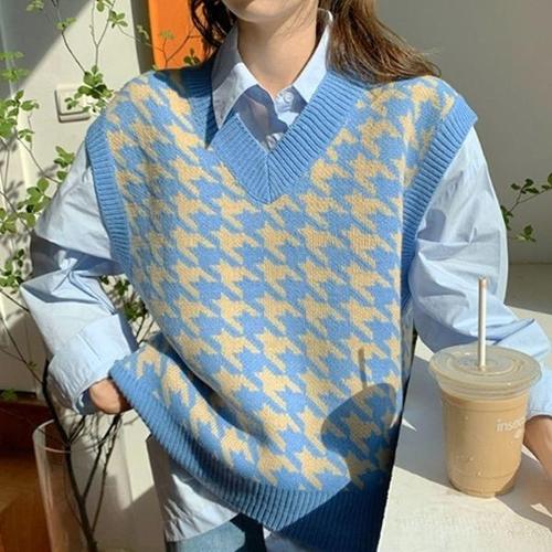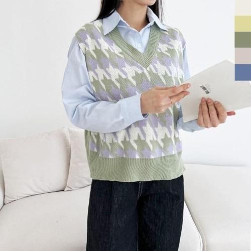 [리빌모아]여자 데일리 하운드 패턴 니트 조끼 DJW-VES-S2LPPT10