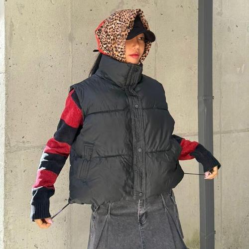[다잇템]여자 푸퍼 드로우코드 하이넥 짧은 조끼 (23524629A)