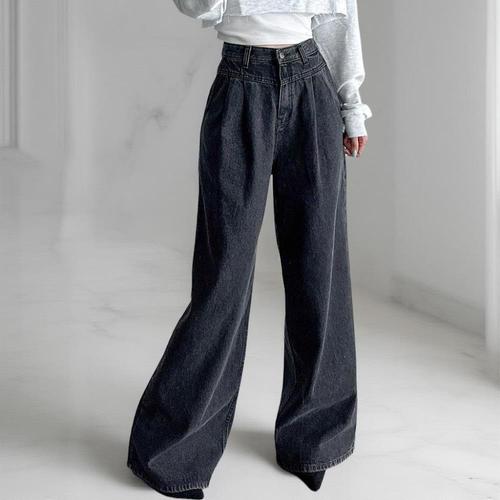 [옷자락] 여성 키큰 가을 맥시 와이드핏 핀턱 하이웨스트 청바지