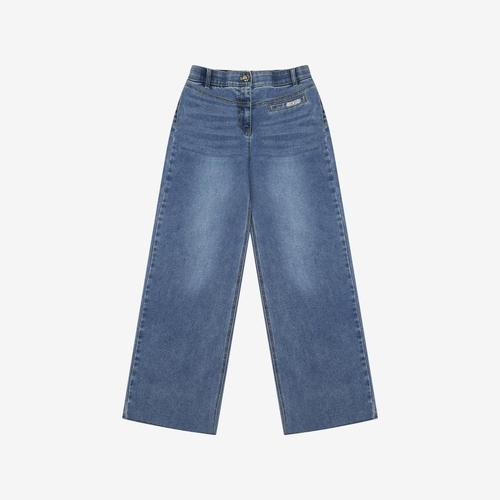히든 밴딩 하이웨스트 와이드 절개 데님팬츠 중청 다리가 길어보이는 디자인