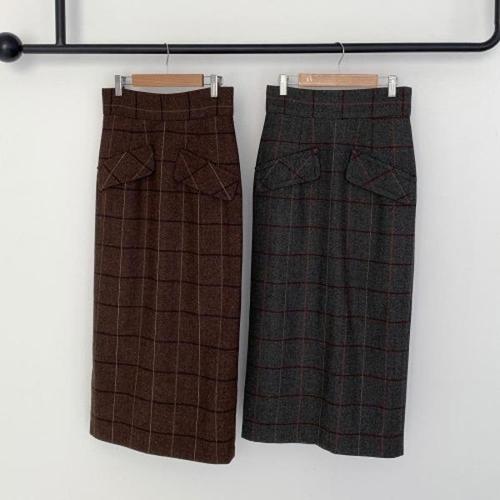 [신상오픈런]|KSK8C8|번에서 긴치마 하이웨이스트 체크 여성 도톰한_18164355_597559