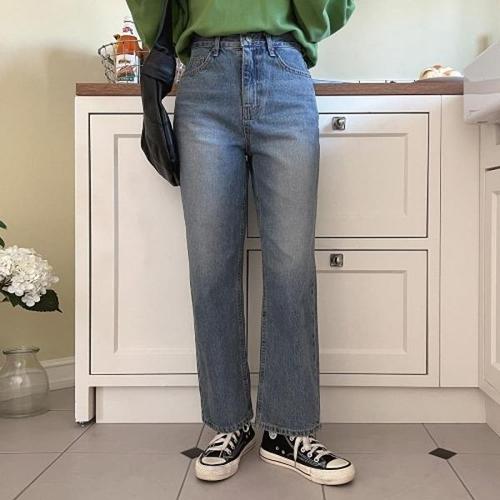 [신상오픈런]|KHP6A00|틴러베 하이웨이스트 가을 깔끔한 중청 데님팬츠 여성_18156100_597559