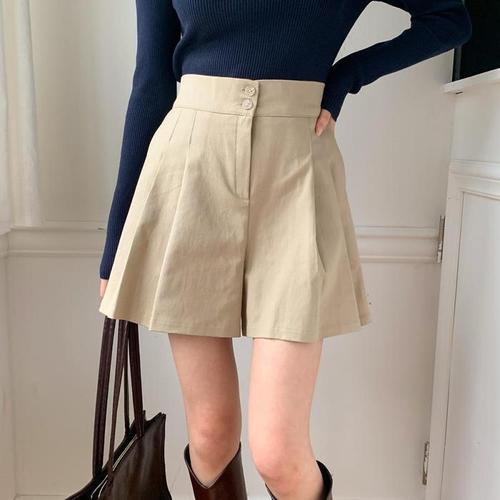 [다잇템]여자 핀턱 하이웨이스트 투버튼 넓은 반바지 (18276601A)