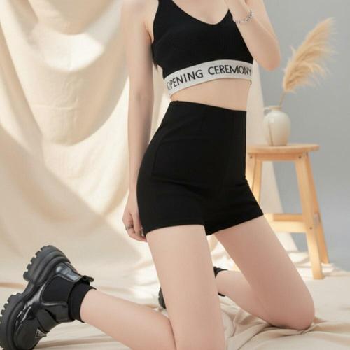 다이나믹피플 여성용 하이웨스트 스판 블랙 숏팬츠 반바지