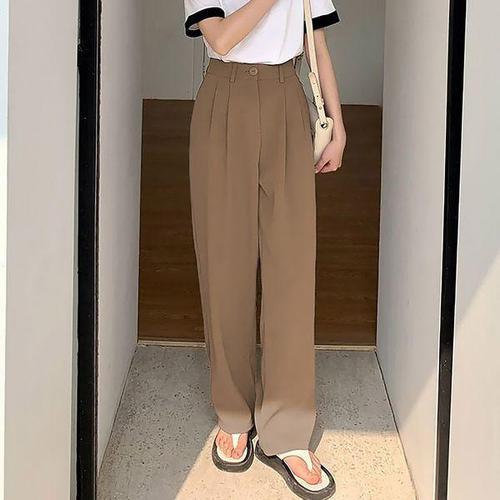 [다잇템]여성 투버튼 넓은 하이웨이스트 단가라 슬랙스