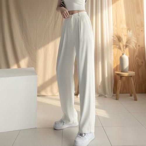 캐주얼 와이드 레그 팬츠 여성용 봄 가을 신상 루즈핏 스트레이트 롱 팬츠 슈트 스타일 하이웨이스트 출퇴근룩