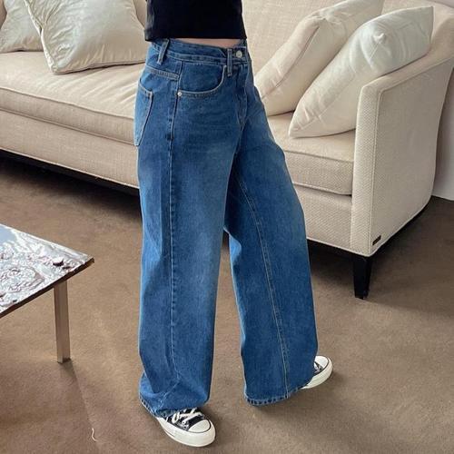 lofei 여성 하이웨이스트 와이드 데님 팬츠 봄 루즈핏 롱 청바지 KZ25
