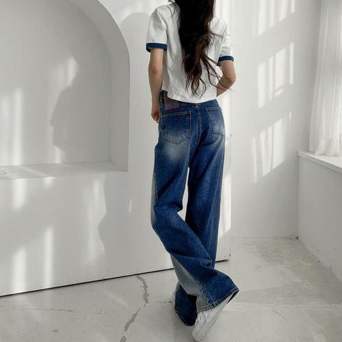 [옷자락] 여성 하이웨이스트 롱 와이드 데님팬츠 뒷밴딩 밑단슬릿