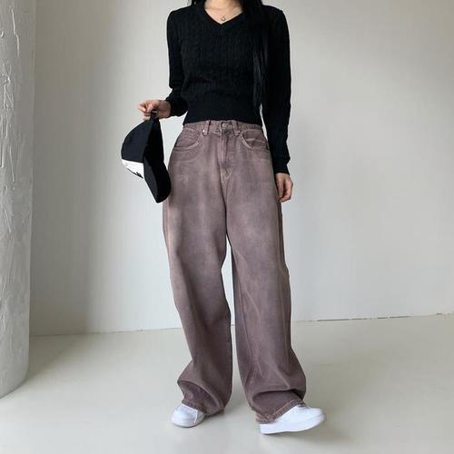 배기핏 일자 아템 배기 청바지 워싱 구제 커브 하이웨스트 편한 진 팬츠 남성용 캐주얼 빈티지 스포M1
