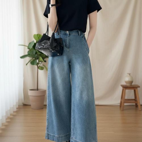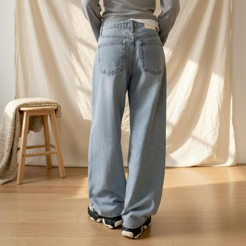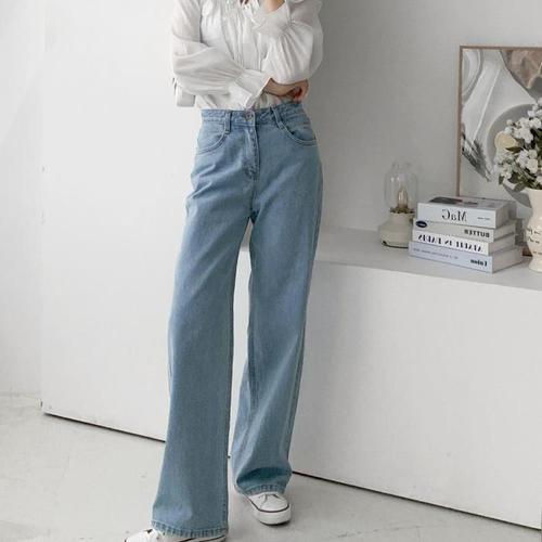 [다잇템]여자 넓은 라이트블루 하이웨이스트 데님팬츠 (13260125A)