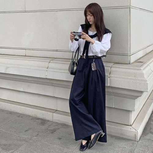 [옷자락]여성 클래식 키링 벨트 하이웨이스트 와이드 팬츠