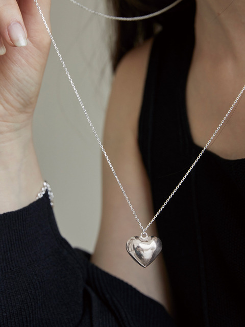 제이로렌 통통 하트 물방울 실버 롱 목걸이 N01163