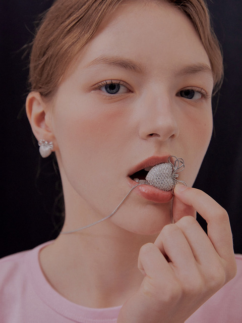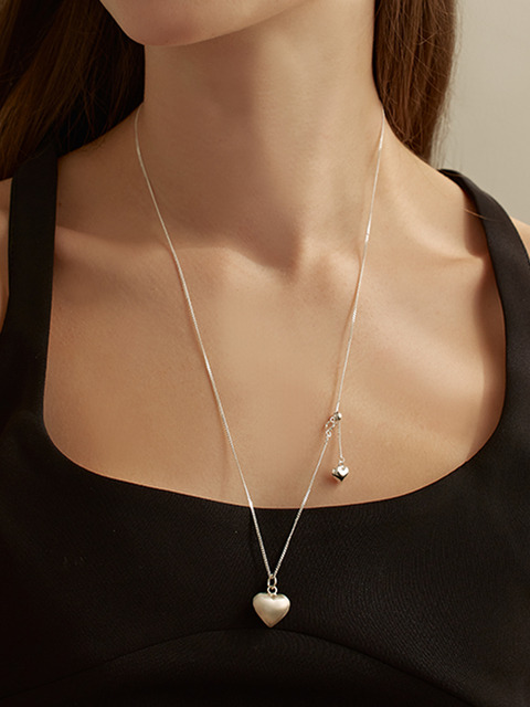 [르웨] [6mm+10mm 진주귀걸이 증정] [5가지 연출 가능] Volume heart long necklace