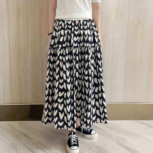 [다잇템]여자 하트패턴 후레아 고무줄 롱 스커트