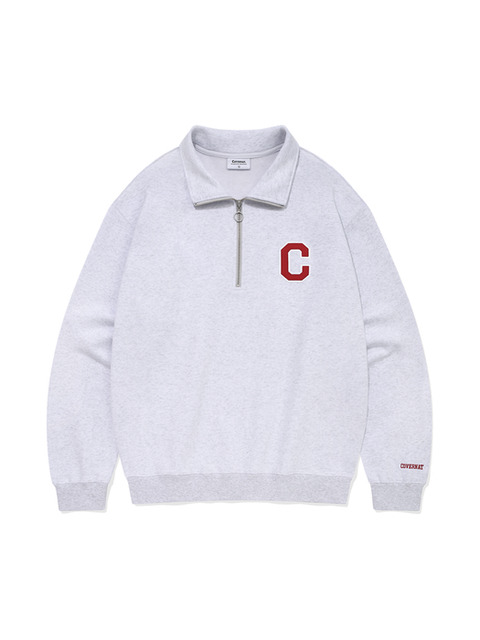 [커버낫] C 로고 하프 집업 맨투맨 헤더 그레이