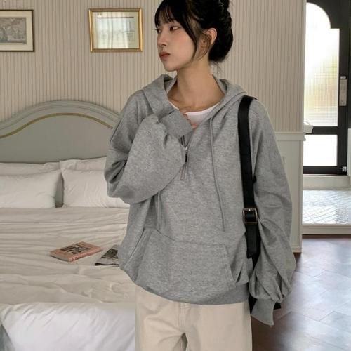 [다잇템]여자 데일리 민무늬 하프집업 맨투맨 후드티 (12394813A)