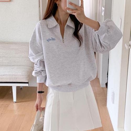 [다잇템]여자 환절기 필기체 하프집업 카라넥 맨투맨 (16994895A)