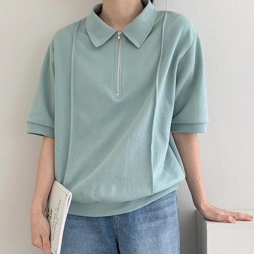 [다잇템]여자 SS 하프집업 카라넥 캐쥬얼 컷아웃 맨투맨 (13954410A)