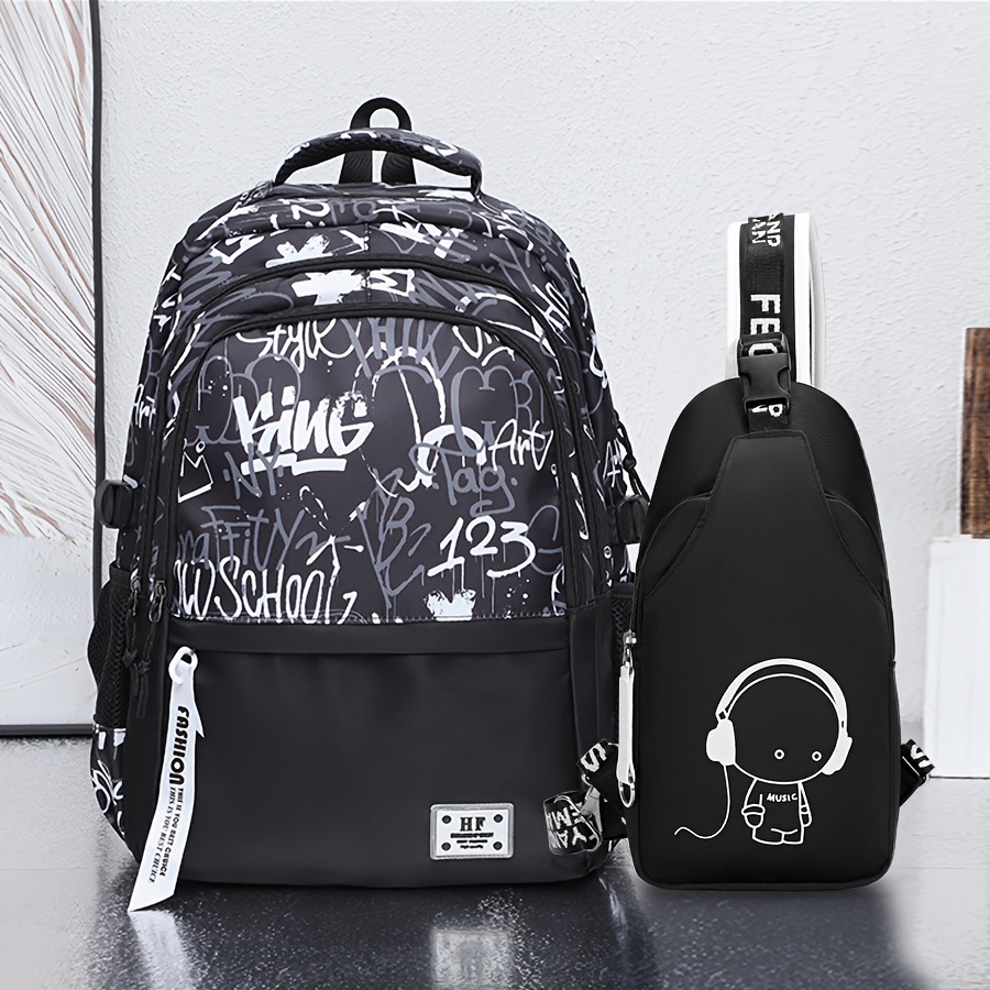 TEMU 2개 대용량 백팩 & 체스트백 - 학교, 대학, 여행용 - 헤비듀티 멀티컴파트먼트 책가방, 조절 가능한 스트랩, 지퍼 잠금, 실용적인 포켓 - 학생, 출퇴근용 백팩 캐리어
