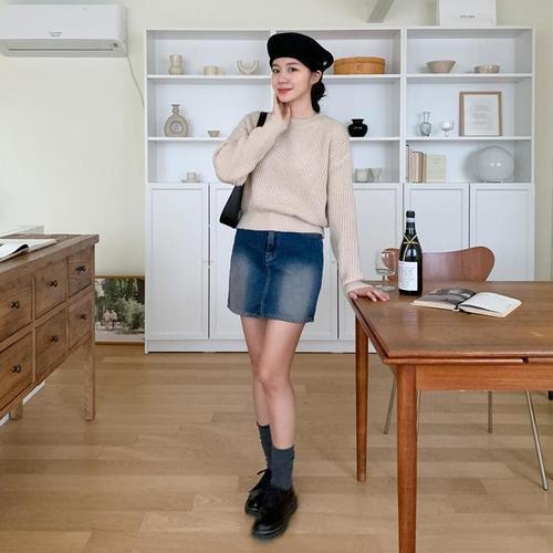 [다잇템]여자 슬릿 FW 진 보온 한파 워싱 쁘띠 스커트 (11936487A)