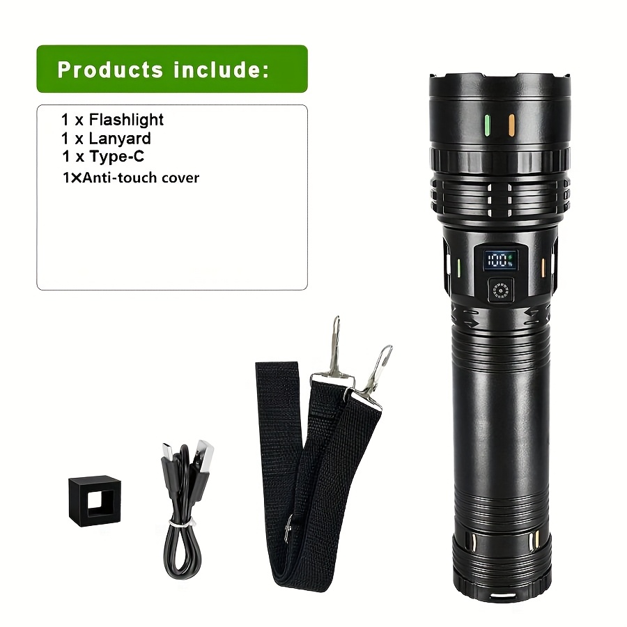 TEMU 초고밝기 LED 전술 손전등 - 충전식, 1200mAh 배터리 장거리 토치, 야외 캠핑 및 보안용