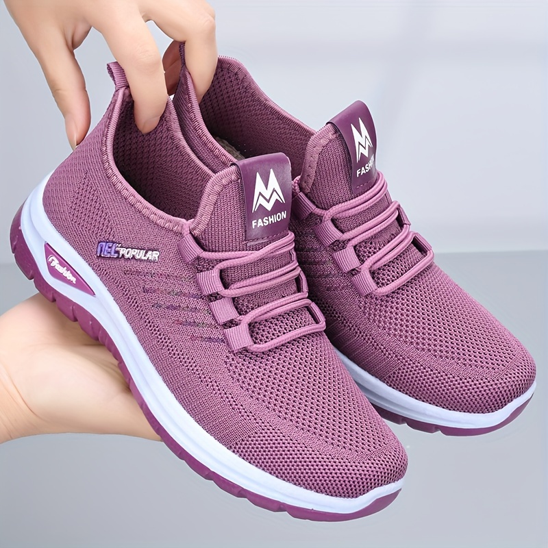 TEMU 여성용 단색 컬러 플라잉 워븐 운동화, 캐주얼 & 통기성이 좋은 슬립온 아웃도어 슈즈, 라이트웨이트 로우 탑 러닝 슈즈 플러스 사이즈