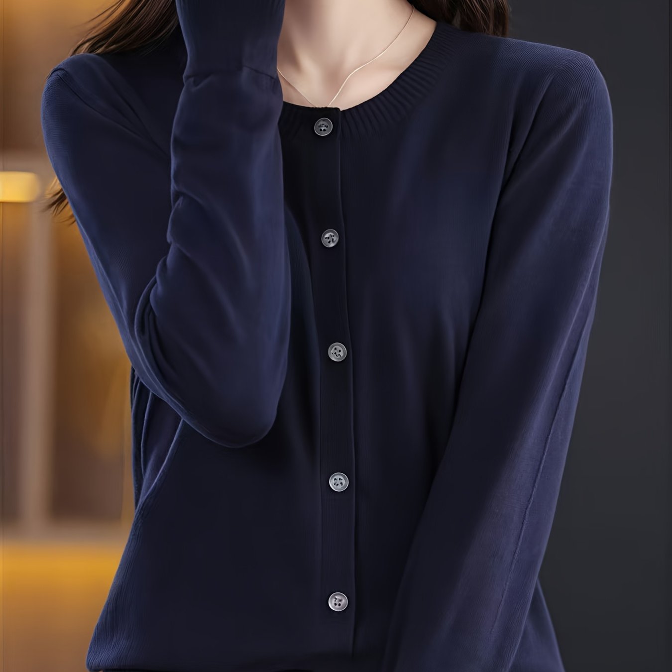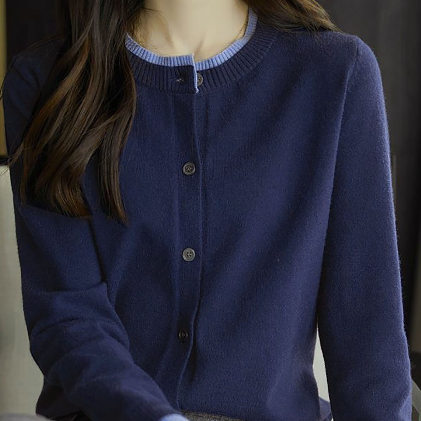 TEMU 여성 봄가을 패션 통근 라운드넥 투톤 기본 긴팔 니트 가디건 데일리 단추 레이어드 배색 부드러운 편안한 상의 슬림소녀 SLIM GIRL