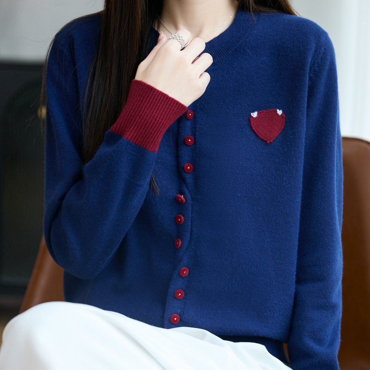 TEMU 새로운 컬러 블록 하트 라운드 넥 가디건, 패치워크 디자인의 루즈 스웨터, 가을과 겨울용|블라우스|여성블라우스