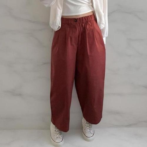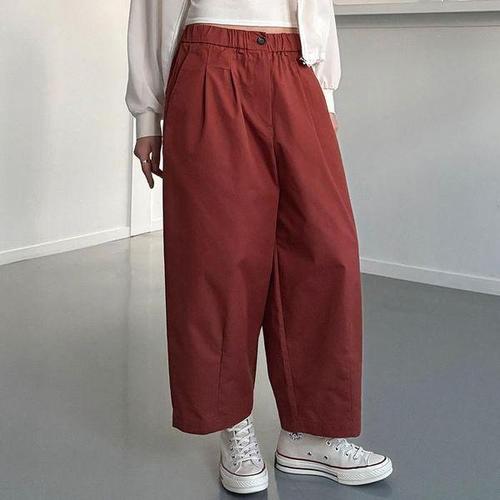 [다잇템_패션]여자 고무줄 항아리핏 단추 투핀턱 나일론 바지