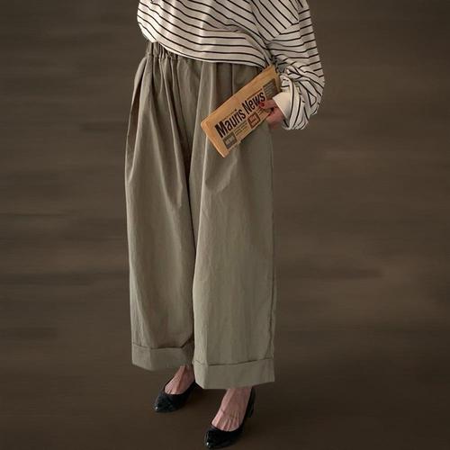 [신상오픈런]여성 항아리핏 투핀턱 버튼 밴딩 와이드 팬츠