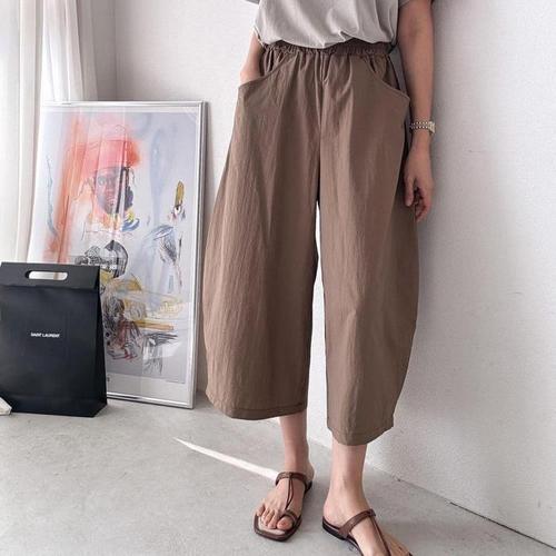 벅시루 여성 잔잔셔링 미시옷 데일리 체형커버 여름 빅사이즈 코튼 벌룬 9부 밴딩 배기바지 6605