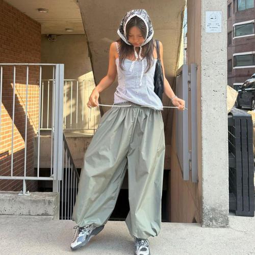 [옷자락] 여자 남자 벌룬 항아리핏 조거팬츠 나일론 밴딩 바지